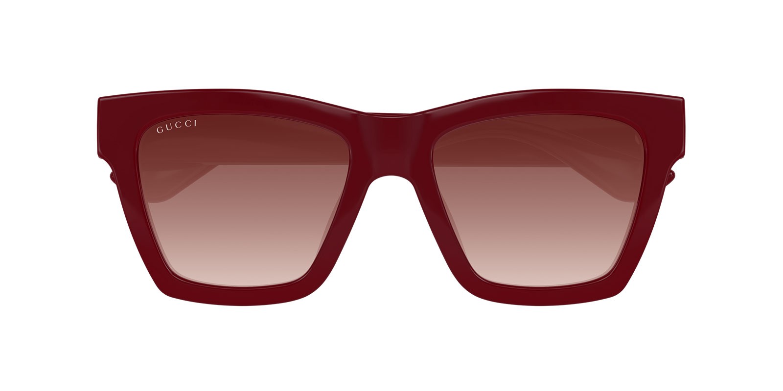 Γυναικεία γυαλιά ηλίου Gucci με μπορντό κοκκάλινο σκελετό και μπορντό ντεγκραντέ φακούς σε σχήμα πεταλούδα.