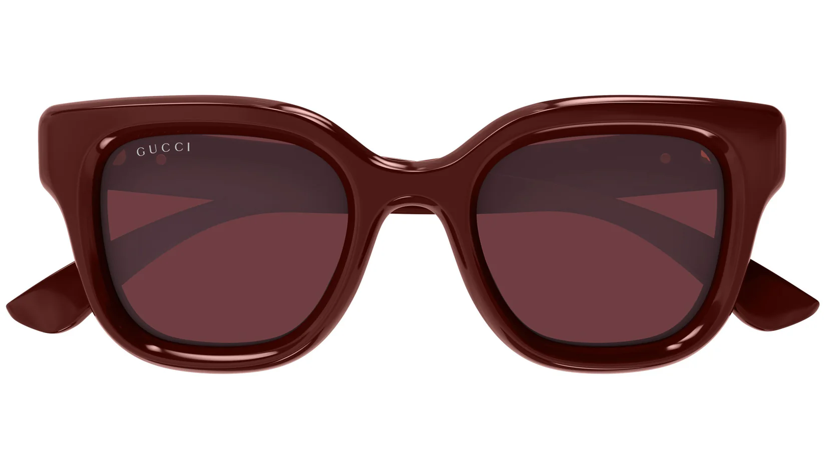 Γυναικεία γυαλιά ηλίου Gucci με μπορντό κοκκάλινο σκελετό και μπορντό φακούς σε σχήμα πεταλούδα.