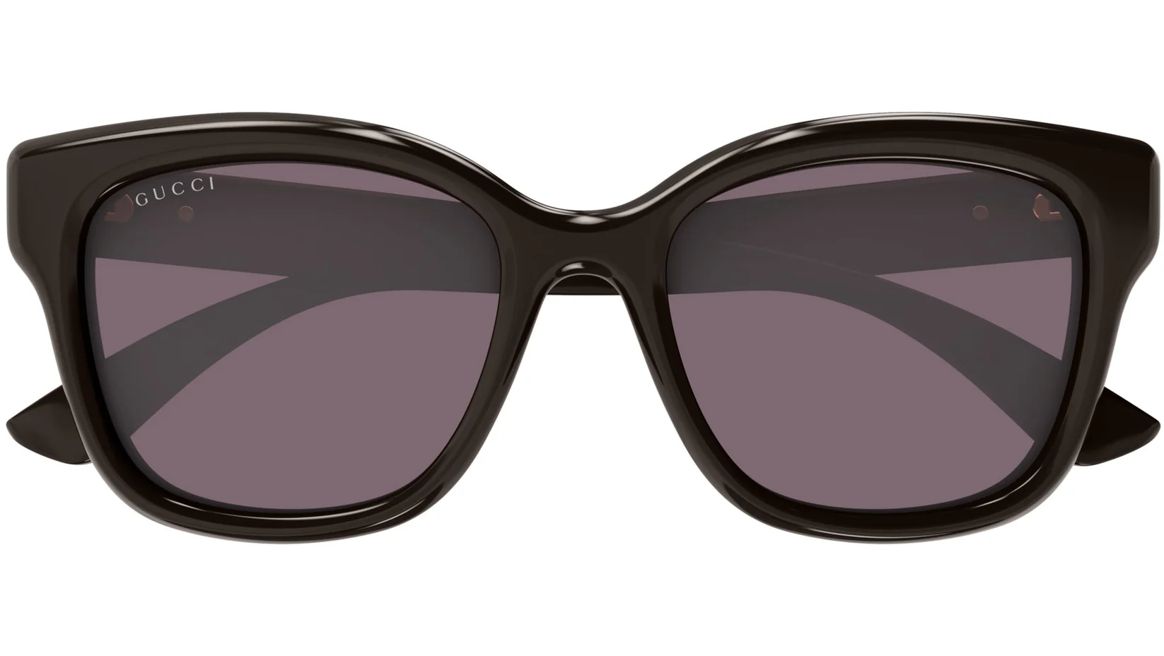 Γυναικεία γυαλιά ηλίου Gucci με καφέ κοκκάλινο σκελετό και μωβ φακούς σε σχήμα πεταλούδα.