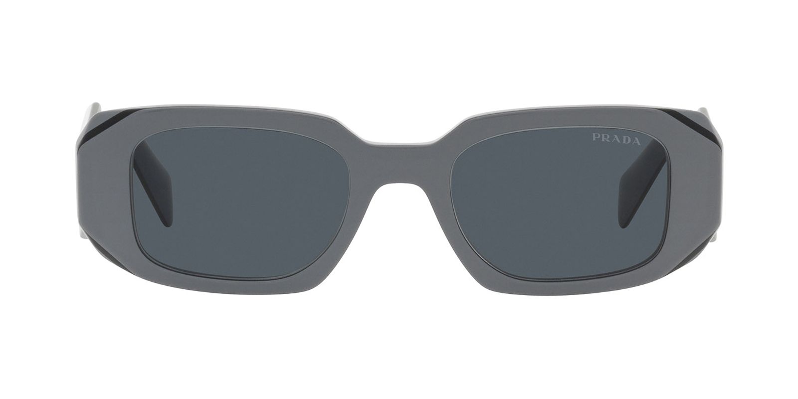 Unisex γυαλιά ηλίου Prada με γκρι κοκκάλινο σκελετό και γκρι φακούς σε ορθογώνιο σχήμα.