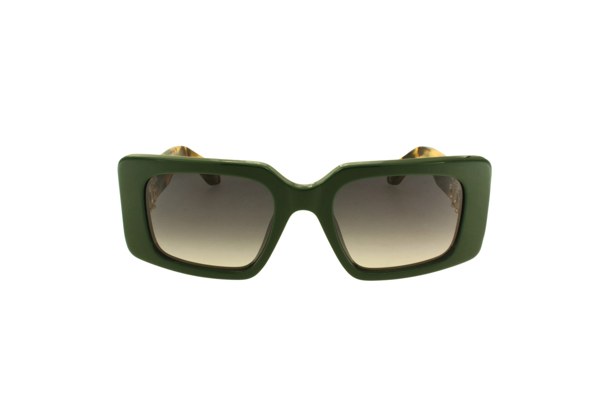 Γυναικεία γυαλιά ηλίου Roberto Cavalli με λαδί κοκκάλινο σκελετό, καφέ ταρταρούγα βραχίονες και γκρι ντεγκραντέ φακούς σε ορθογώνιο σχήμα.